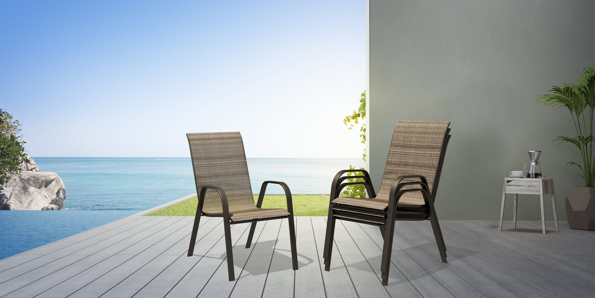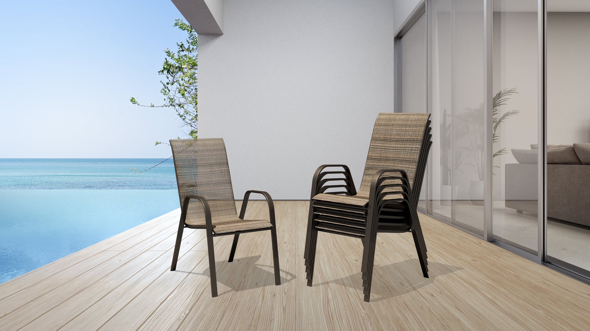 Stacking Patio Dining Armchair Set - Wavy Brown